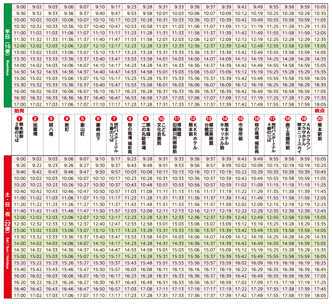 (ただし熊本城周遊バス1日乗車券の販売は7:30〜最終便出発まで)