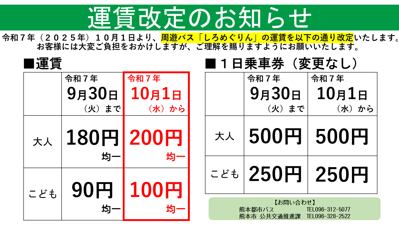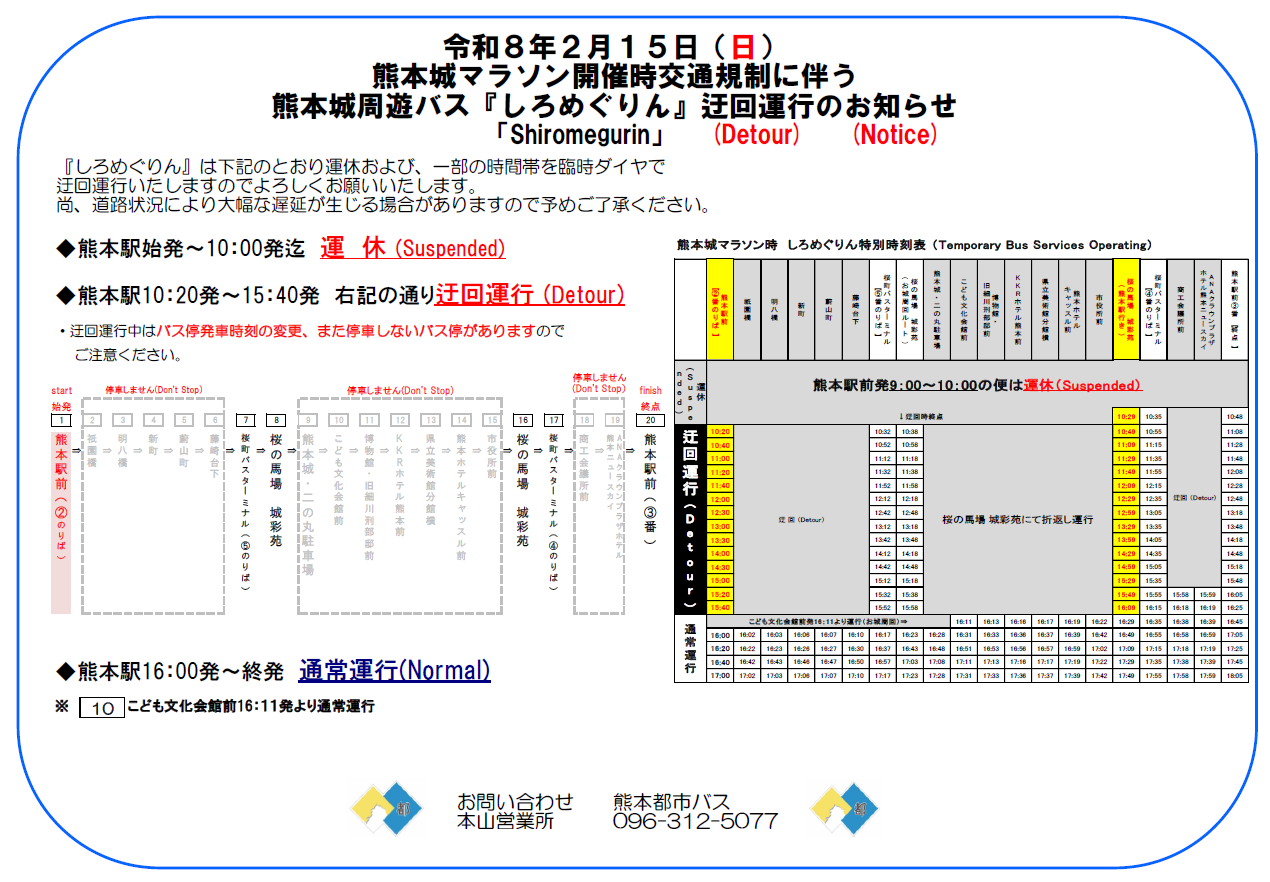 (ただし熊本城周遊バス1日乗車券の販売は7:30〜最終便出発まで)